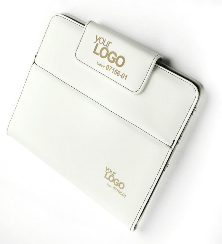 Portfel na Ipad wykonany z ekologicznej skóry PU. Uchwyty Ipada są przymocowane do podstawy za pomocą rzepu, co umożliwia całkowite dostosowanie do każdego rozmiaru Ipada. W środku jest miejsce na długopis lub dotykowy długopis. Można go używać jako stojaka Ipada - 3 różne kąty. Logo zostanie wydrukowane lub wygrawerowane.