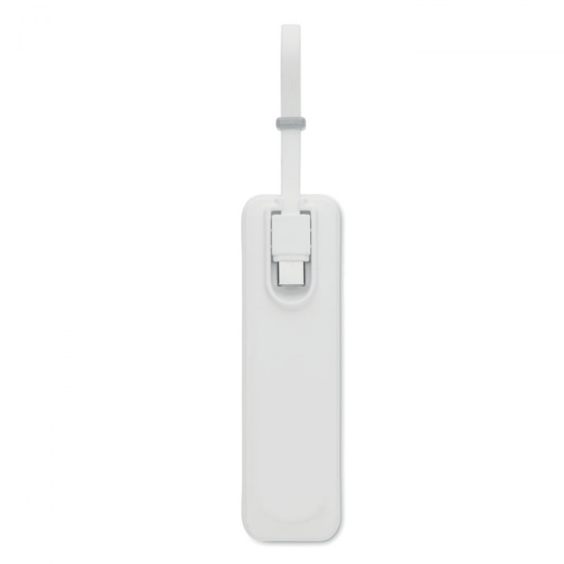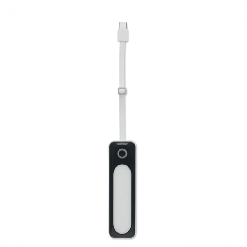 Powerbanka 5000 mAh v pouzdře z ABS. Výstup DC5V/2A. Indikátor (6 COB led) a integrovaný USB kabel s konektorem typu C.