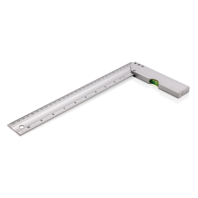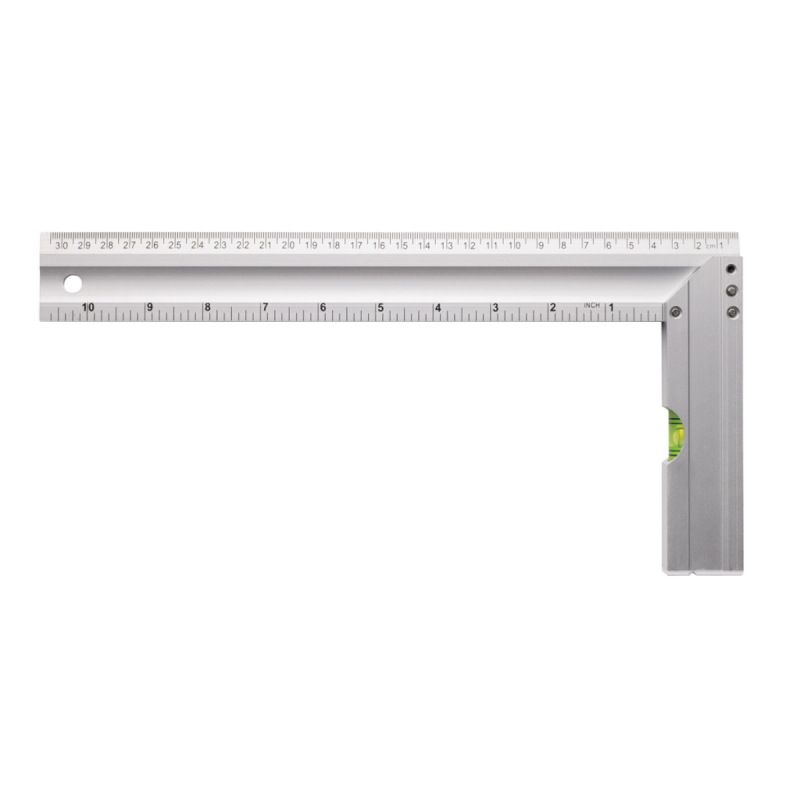 Hliníkové čtvercové pravítko s integrovanou vodováhou, ideální pro měření rohů nebo zakreslování čtverců. Míra v cm (30) z jedné strany, v palcích (10) ze strany druhé. Přesnost vodováhy: 0,5 mm.