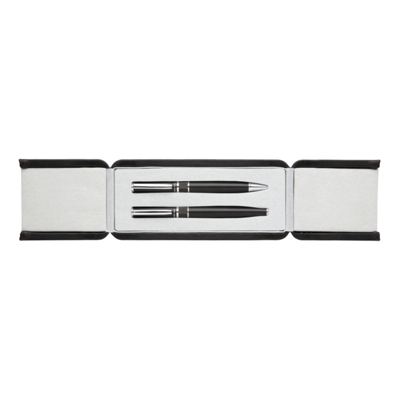 Luxusní sada sada per ve stylovém provedení. Sada obsahuje kuličkové pero a roller, balené v elegantní dárkové krabičce s vyraženým logem. Obě pera jsou vybavena německým modrým inkoustem Dokumental pro extra příjemné psaní průměrně 1 200m textu.