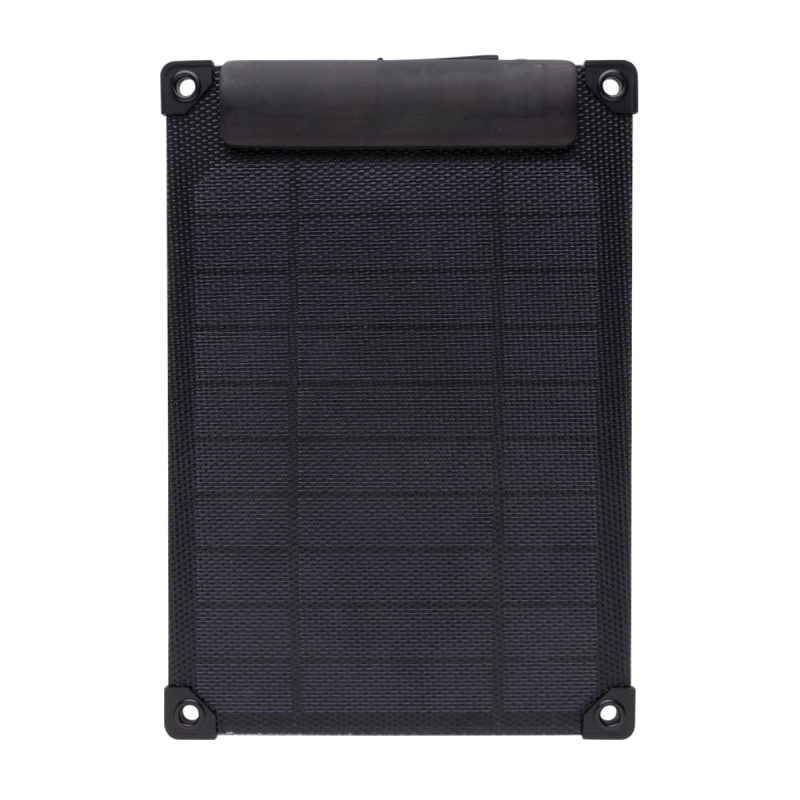 Přenosný solární panel 5 W umožňující přímé nabíjení zařízení jako jsou telefony, reproduktory, powerbanky a jiné. Panel stačí umístit na sluneční světlo a nabíjené zařízení připojit. Stupeň nabíjení vždy závisí na slunečních podmínkách. Panel využívá vysoce kvalitní monokrystalické solární panely s konverzním poměrem 21 %. Včetně USB A a USB C výstupů (max 5V/1A) a světelných indikátorů znázorňujících rychlost nabíjení. Rychlost solárního nabíjení: 5V/1 000 mA. Integrovaný stojánek pro nastavení ideálního úhli nabíjení. Vyrobeno z RCS recyklovaného ABS. Voděodolnost IPX 6. Baleno v FSC dárkovém balení.