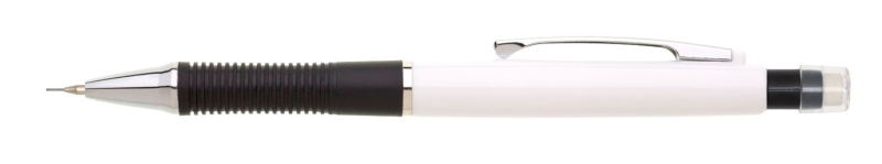 Mikrotužka PRIOLA v bílé barvě s černým gumovým gripem, tuhy HB 0,5mm.