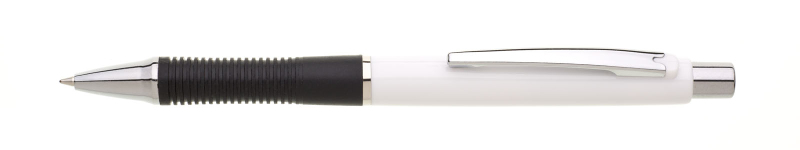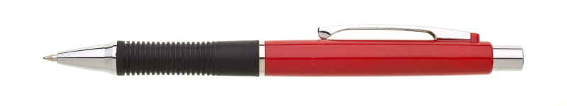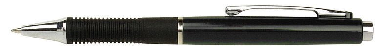 Kuličkové pero PRIOLA jasně žluté, má úchop z černého, pogumovaného vroubkovaného materiálu. Doplňky pera jsou ve stříbrné barvě.