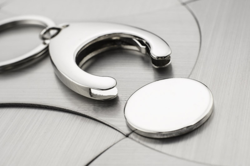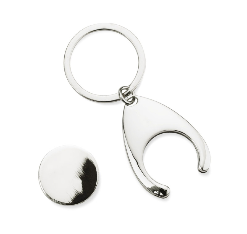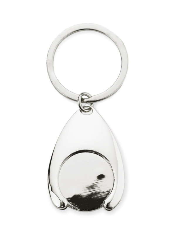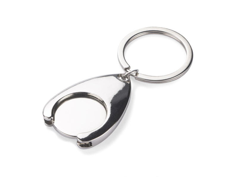 Kovový, chromovaný klíčenka s mincemi. Každý balíček je zabalen do černé kartonové krabice. Logo může být vyryto na mince.