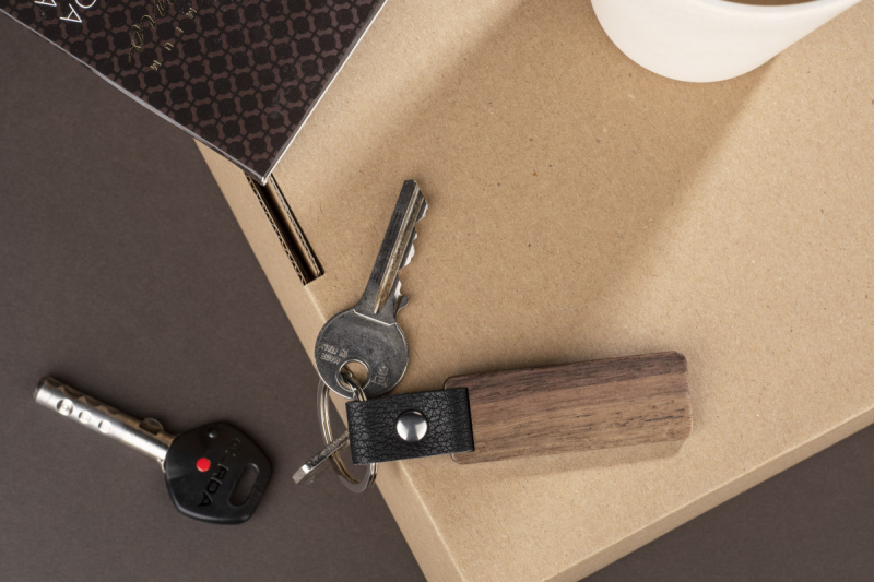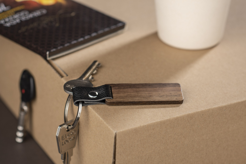 Přívěšek HASEL je elegantním přívěškem vyrobeným z ořechového dřeva. Kovová obruč zavěšená na kožené pásce.