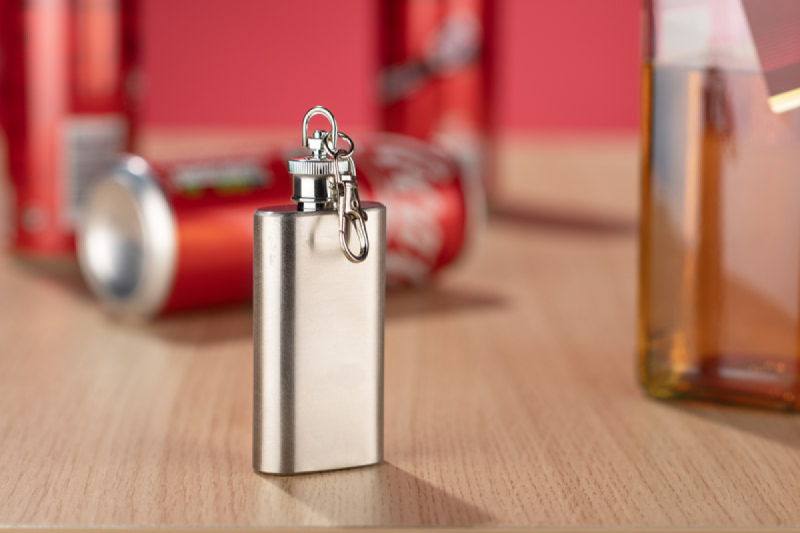 Klíčenka FLASIK 50 ml je elegantní a praktická reklamní pomůcka, která kombinuje funkčnost miniaturní placatky s pohodlím klíčenky. Je vyroben z nerezové oceli s matnou povrchovou úpravou a poskytuje odolnost a stylový vzhled. Vzduchotěsné těsnění umožňuje bezpečné uložení 50 ml tekutiny a karabinka umožňuje snadné připevnění na klíče, batoh nebo opasek. Ideální jako originální firemní dárek s možností laserového gravírování značky. Skvělá volba pro značky, které hledají originální a odolné reklamní pomůcky.