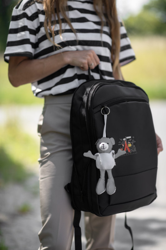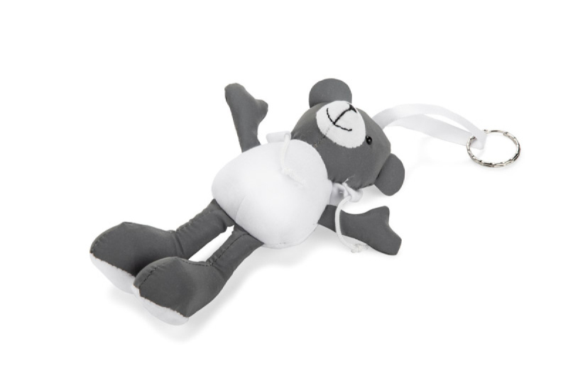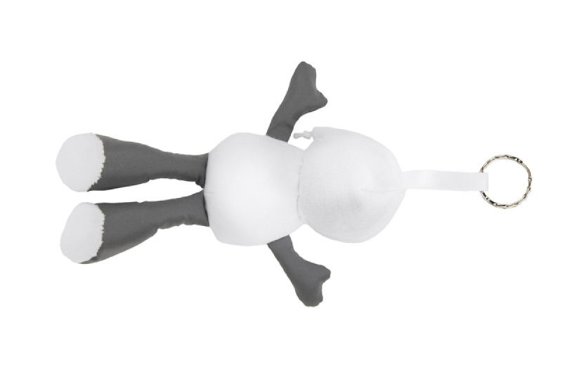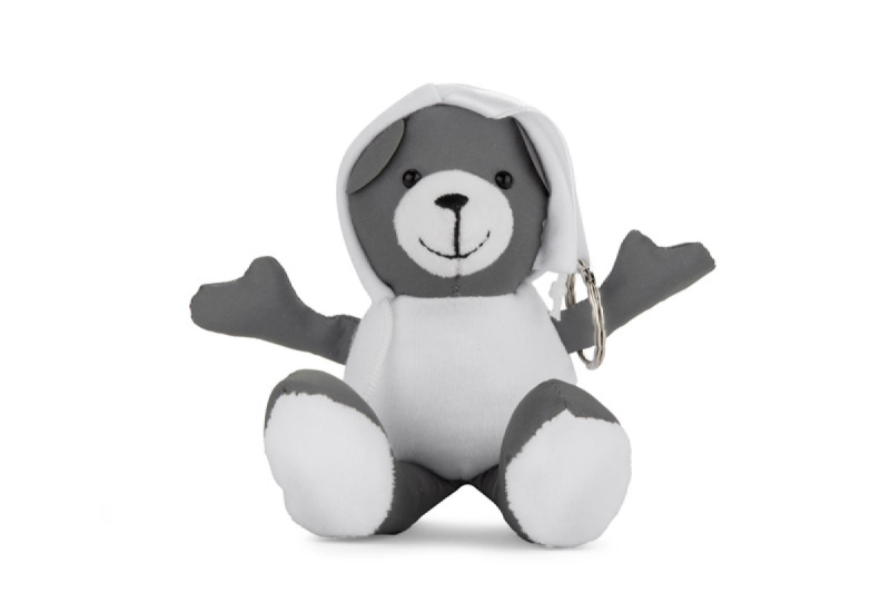 TED je příjemná reklamní klíčenka ve tvaru medvídka ve svetru. Hlava, ruce a nohy jsou vyrobeny z lesklého materiálu, který odráží světlo a přitahuje pozornost. K medvídkovi je přišita bílá polyesterová stuha zakončená kovovým kroužkem, který umožňuje jeho připevnění na batoh, tašku nebo klíče. Přátelský a funkční doplněk - ideální pro sezónní propagační kampaně.