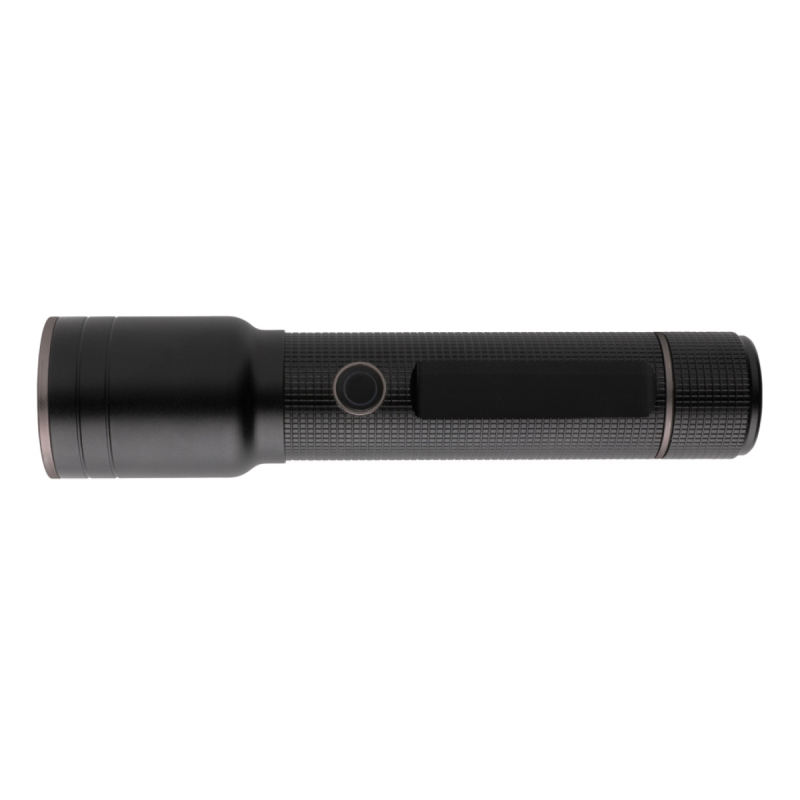 Vysoce funkční, výkonná a velmi stylová opakovaně dobíjitelná svítilna. Tělo vyrobené z prémiového RCS recyklovaného hliníku skvěle padne do ruky. RCS (Recycled Claim Standard) je globální standard, který umožňuje ověřit použití recyklovaného materiálu v produktu napříč celým dodavatelským řetězcem. Celkový podíl recyklátu dle váhy produktu: 20 %. Hliník při recyklaci nijak neztrácí své vlastnosti, lze jej tedy opakovaně recyklovat. Výkonná žárovka se svítivostí 1 500 lumenů a dosvitem až 800 m. 5 módů světla včetně SOS. IPX4 zabezpečuje odolnost vůči nepřízni počasí nebo vlhkosti. Integrovaná baterie s kapacitou 4 000 mAh umožňuje opakované dobíjení jednoduše skrze USB port a pužívání až 10h na jedno nabití. Skrze USB umožňuje i dobití telefonu. Produkt i balení bez PVC. Baleno v FSC dárkovém balení. Vstup USB C: 5V/1A, výstup: 5V/1A.