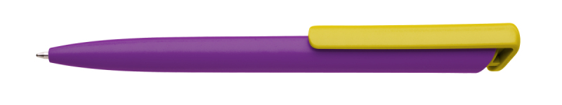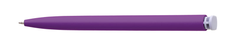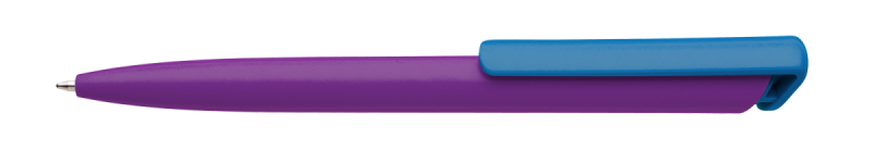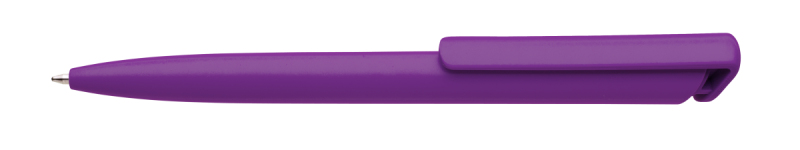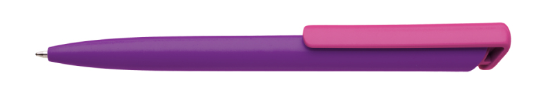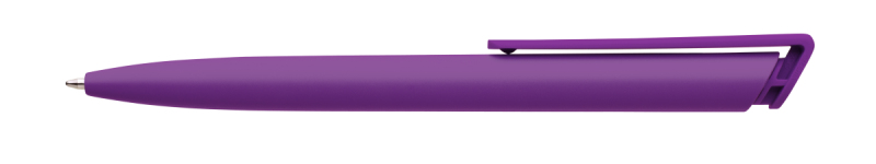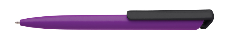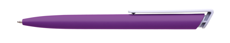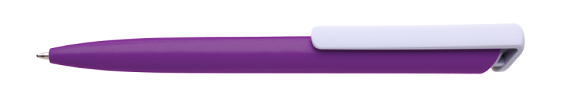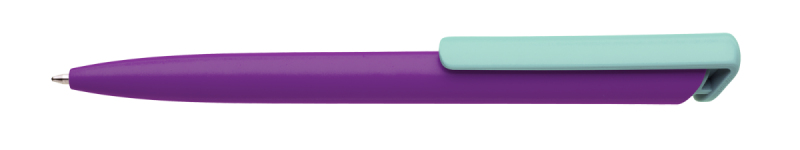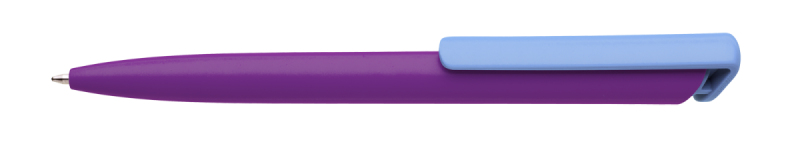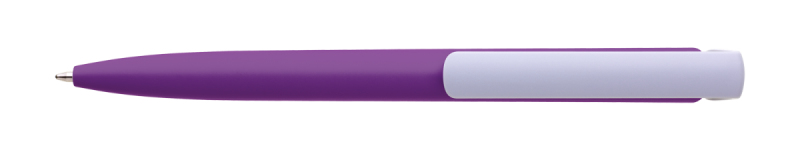 Česká propiska BOIA v minimalistickém designu fialového oválného těla s dynamickým tvarem bílého masivního klipu. Tělo i klip nabízí velký prostor pro značení logem zákazníka. Materiál plast, náplň velkoobsahová, modře píšící. BOIA je vyráběna v České republice.