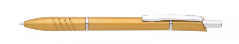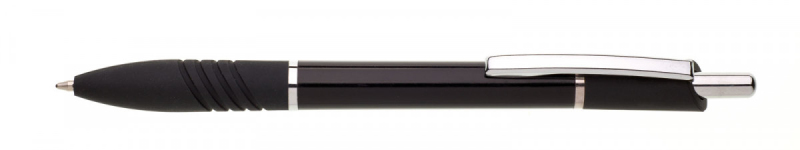 Tmavě modrá gelová plastová propiska s pochromovanými doplňky s gelovou velkoobsahovou náplní.