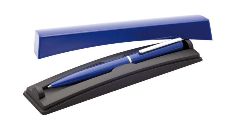 Modrá hliníková propiska CELESTE značky GABRIELIS. Dodáváno v plastové dárkové krabičce a papírovém obalu ][.
