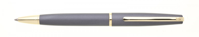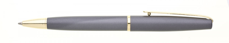 Elegantní šedá mosazná propiska s doplňky ve zlaté barvě. Laser zlato-šedý