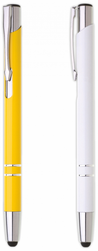 Žlutá varianta oblíbené propisky LOBIA, tentokrát s ukončením TOUCH. Lesklé tělo se dvěma stříbrnými proužky a stříbrnými doplňky.