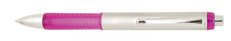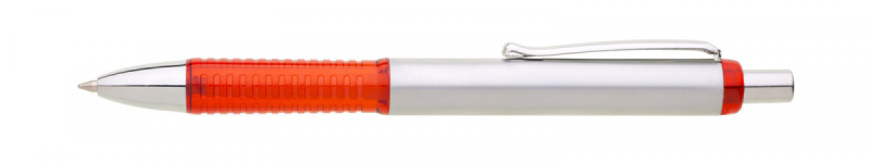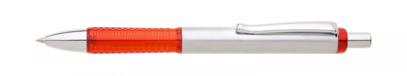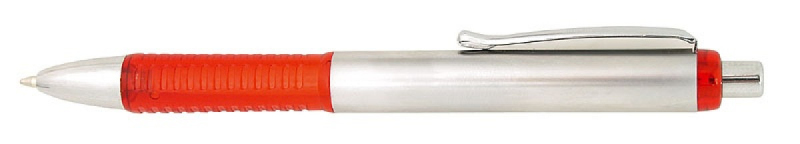 Propiska s hliníkovým tělem a červeným plastovým úchopem o rozměrech 135x11 mm.