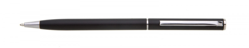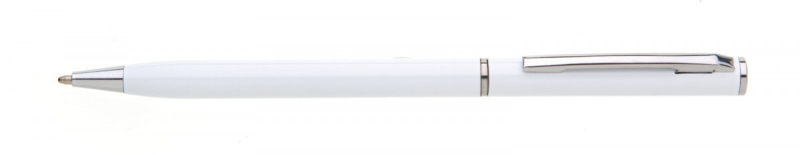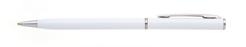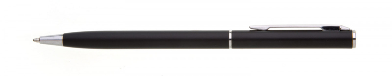 Tenká propiska s otočným mechanismem o rozměrech 130x 7,5 mm. Materiál hliník, náplň modře píšící.