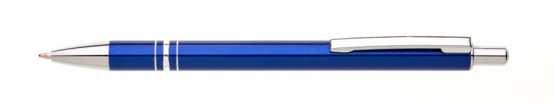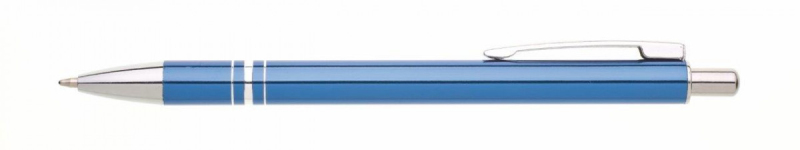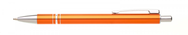 Kuličkové pero RENZA NEW s novým klipem je vyrobeno z hliníku, je v oranžové barvě, na úchopové části má 3 stříbrné proužky. Tužka má pochromované doplňky jako jsou špička, klip a cvakátko. Náplň X 20 - 10,7 cm, modře píšící.