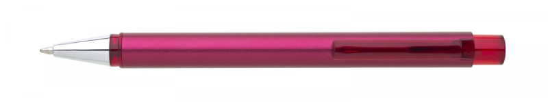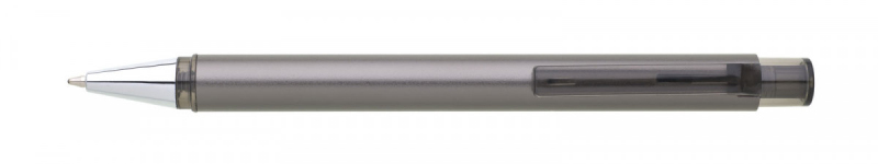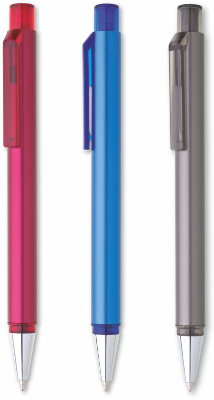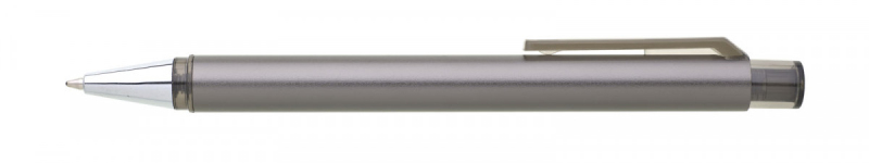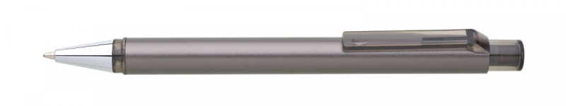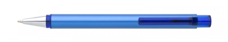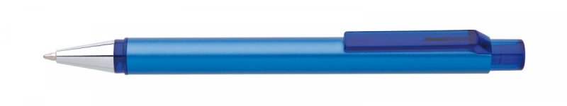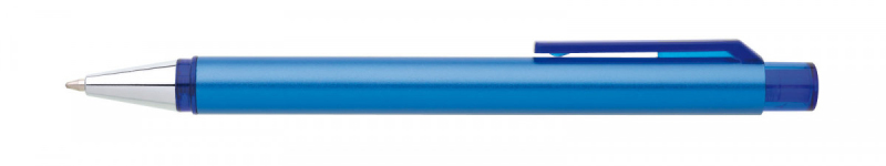 Elegantní hliníková propiska s chromovou špičkou a plastovým klipem a cvakátkem v barvě těla. Náplň velkoobsahová, modře píšící.