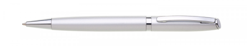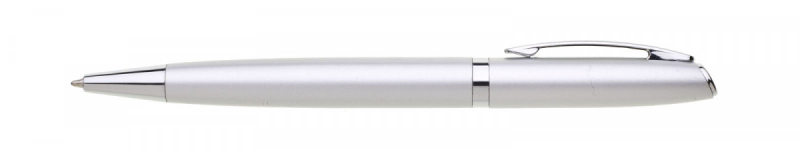 Hliníková propiska TORICO s otočným mechanismem v barvě matně modré a stříbrnými doplňky. Náplň velkoobsahová, modře píšící.