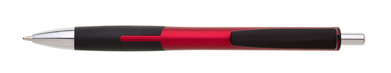 Plastová propiska CHANEL červená s černým, pogumovaným gripem a širokým plastovým, černým klipem vhodný pro potisk. Cvakátko a špička je pochromovaná. Náplň X20 -110 mm.