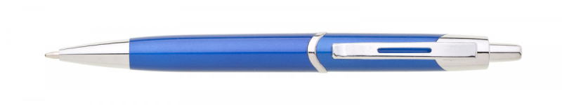 Kuličkové pero CIANO s modrým tělem. Klip je zdobený výsekem ve tvaru oválu. Doplňky pera jsou stříbrné. Náplň pera je velkoobsahová, modře píšící.