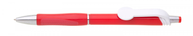 Varianta oblíbené propisky s rozšířeným klipem ve tvaru kola vhodným pro plnobarevný UV potisk. Gumový grip je v červené barvě. Značka GABRIELIS. Náplň X-20, hrot 1 mm, modře píšící.