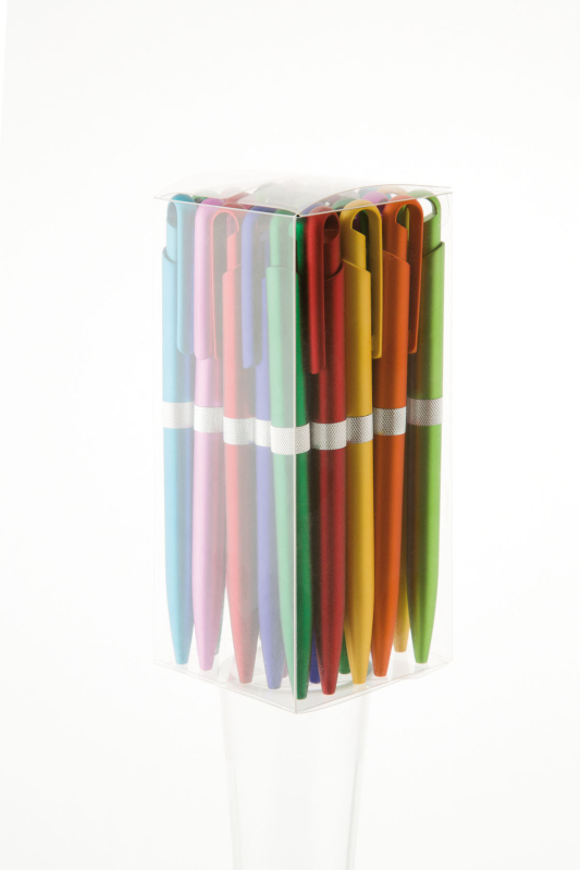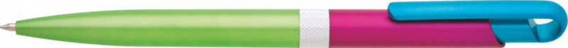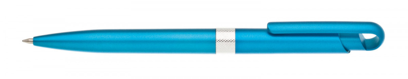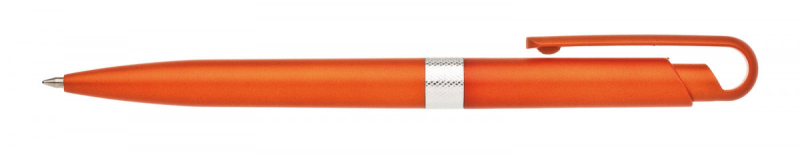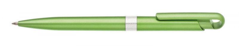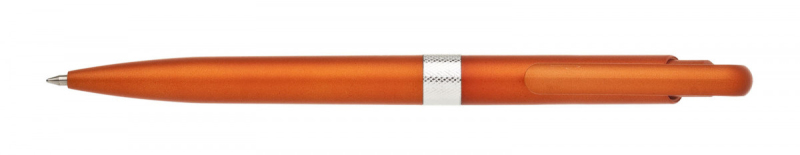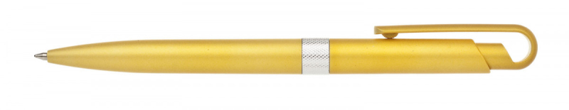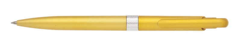 Plastové, kuličkové pero FIROL má žluté, metalické tělo se stříbrným rýhovaným proužkem uprostřed. Náplň velkoobsahová, modře píšící. Kolekce DESIGN.