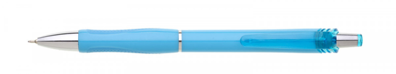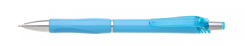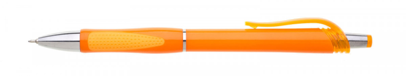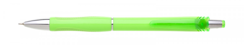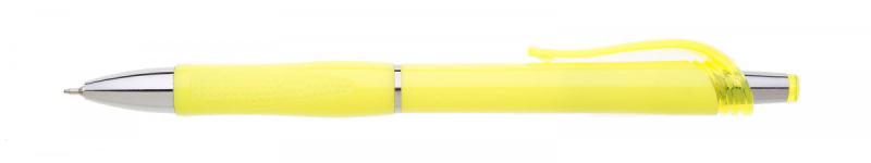 Neonová žlutá plastová propiska s transparentním klipem a stříbrnými doplňky. Náplň X20 s mikrohrotem, semi gel, modře píšící.