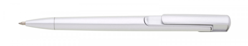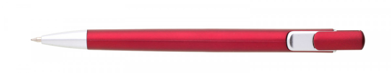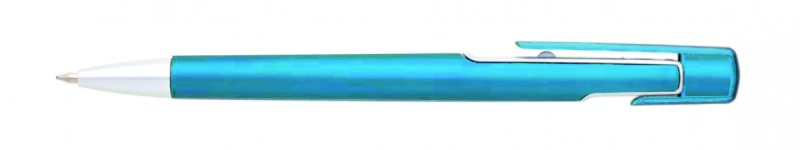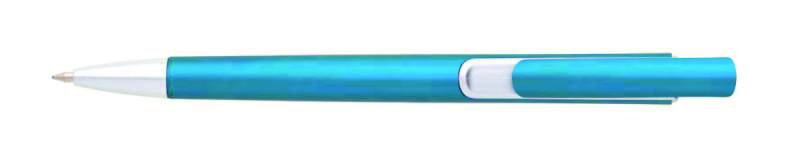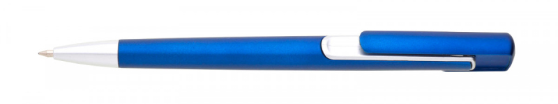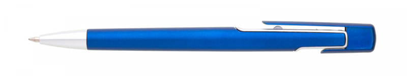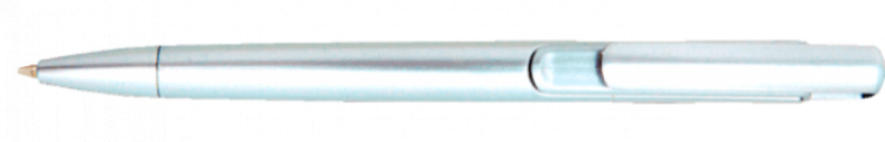 Plastová propiska GIDI s metalickým povrchem a efektním klipem ve žluté barvě, špička je stříbrná. Náplň velkoobsahová, modře píšící.