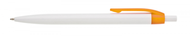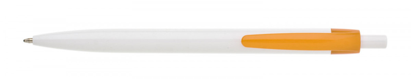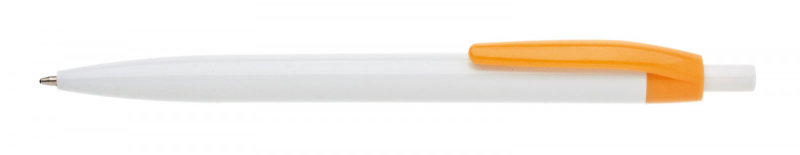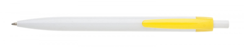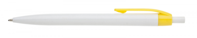Plastové, kuličkové pero LIDO má bílé tělo a žlutý klip. Náplň X 20-10,6 cm, modře píšící.