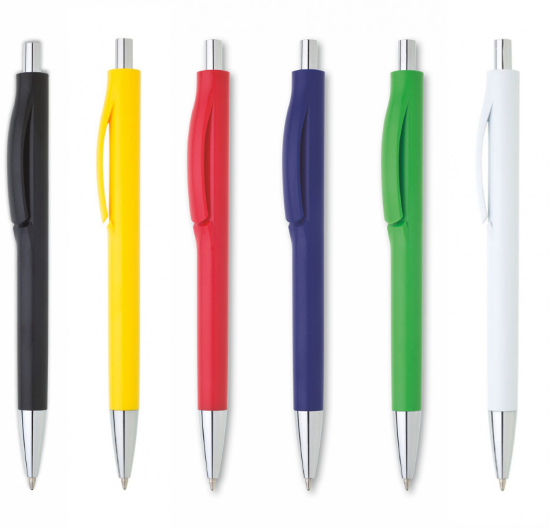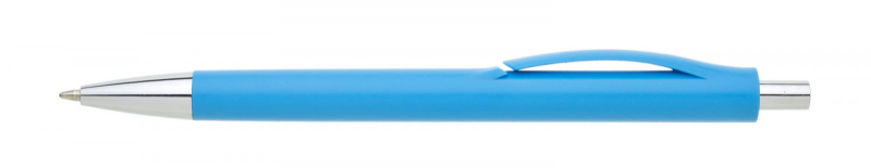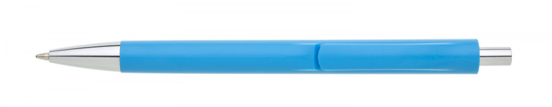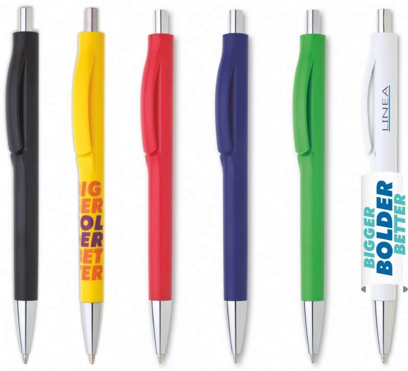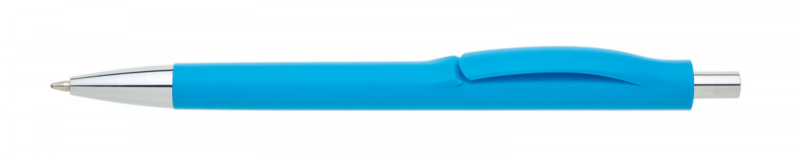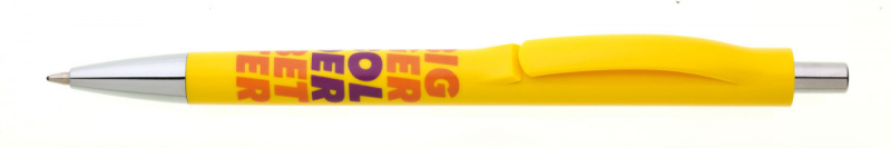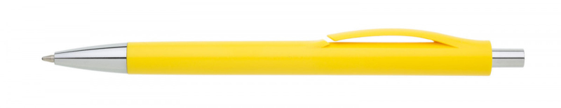 Propiska LINEA žlutá má zajímavě řešený klip a stříbrné doplňky, modře píšící náplň. Kolekce DESIGN.
