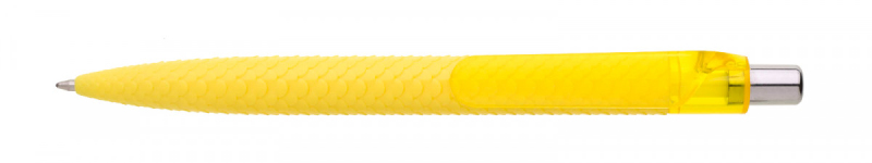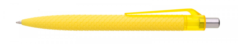 Plastová propiska PANGO se šupinami připomínajícími luskouna má plnobarevné žluté tělo, průhledný klip v barvě propisky a pochromované cvakátko. Náplň velkoobsahová, modře píšící.