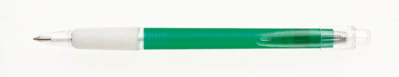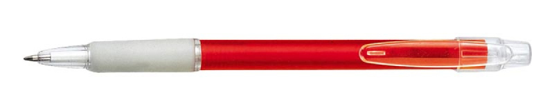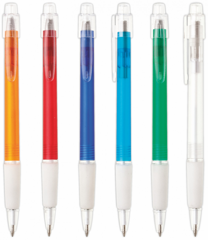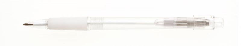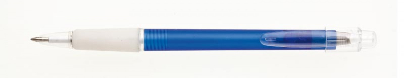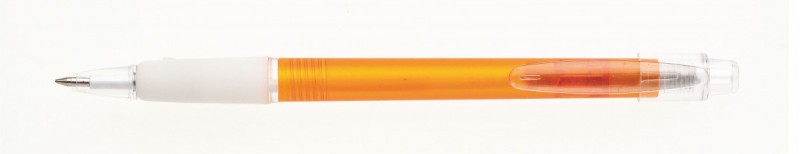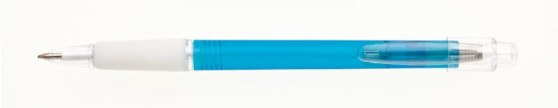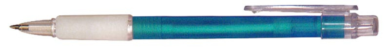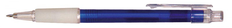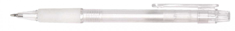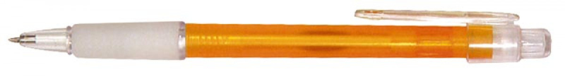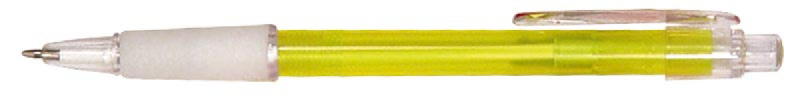 Kuličkové transparentní pero PROSTO. Má gumový úchop, tělo pera je žluté. Klip a špička pera je průhledná.Náplň je X20, modře píšící.