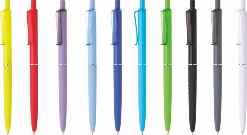 Tenká žlutá propiska má 3D soft povrch ve spodní části, horní část propisky je hladká, vhodná pro umístění loga, Obě části odděluje tenký stříbrný kroužek. Klip je průhledný v barvě propisky. Kolekce DESIGN. Náplň X20 modře píšící.