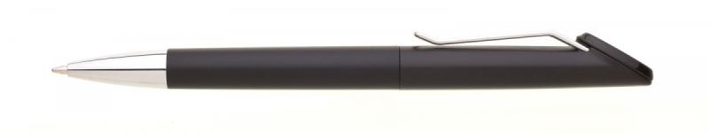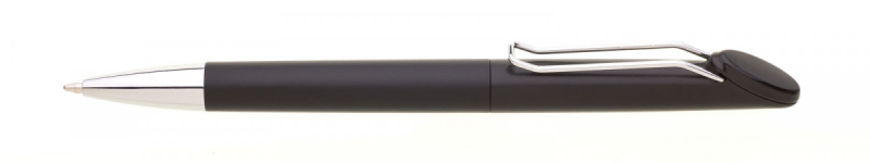 Plastová černá otočná propiska RONEBI s chromovou špičkou a chromovým klipem. Držák klipu je černý a je možné na něj umístit epoxy samolepku. Náplň velkoobsahová, modře píšící.