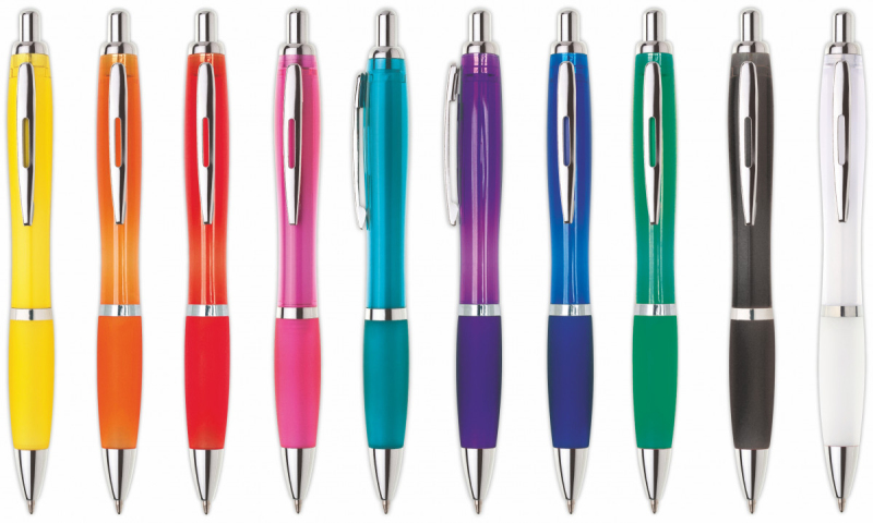 Oblíbené plastová propiska ULTA s celobarevným, transparentním, žlutým tělem. Barva pogumovaného úchopu je stejná jako tělo. Pero je zdobené stříbrným proužkem, ostatní doplňky jsou také stříbrné. Náplň je velkoobsahová, modře píšící. Kolekce EVERGREEN.