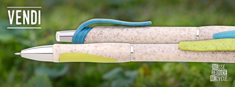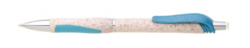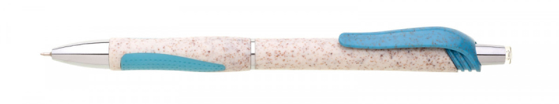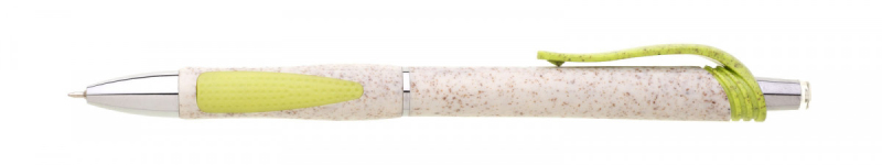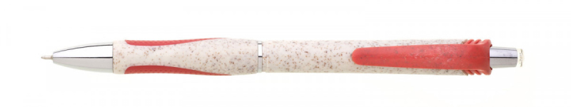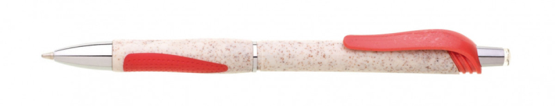 Propiska s plastem s podílem pšeničné slámy v přírodní barvy s červeným klipem a barevným gumovým úchopem. Náplň s mikrohrotem.