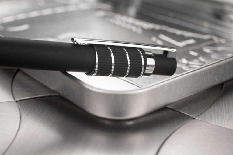 SPINO se vyznačuje kombinací klasického kuličkového pera s oblíbeným antistresovým spinnerem, který se nachází těsně pod klipem. Pouzdro pokryté měkkou povrchovou úpravou na dotek zajišťuje pohodlí při psaní. Spinner s dekorativními stříbrnými prvky je nejen poutavý, ale také pomáhá uvolnit napětí během práce nebo jednání. Jedná se o funkční psací pomůcku se zábavným prvkem, která je ideální jako originální reklamní prostředek.