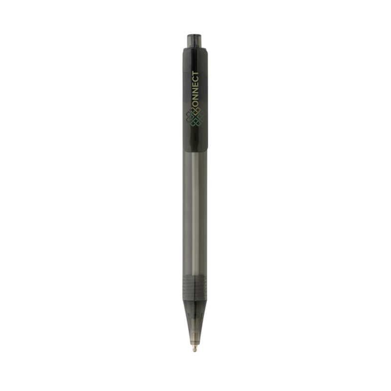 Moderní pero vyrobené z GRS recyklovaného PET plastu. GRS (Global Recycle Standard) je globální standard, který umožňuje ověřit použití recyklovaného materiálu v produktu napříč celým dodavatelským řetězcem. Celkový podíl recyklátu dle váhy produktu: 84 %. Německá náplň s modrým inkoustem Dokumental® pro psaní až 1 200m textu. TC kulička pro velmi příjemné psaní.