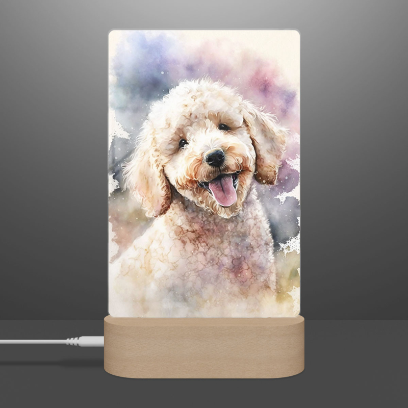 Součástí balení je akrylové sklo dle výběru, dřevěný RGB LED stojánek a napájecí USB kabel.