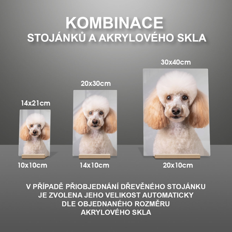 V případě přiobjednání dřevěného stojánku je zvolena jeho velikost automaticky dle objednaného rozměru akrylového skla viz produktové foto.