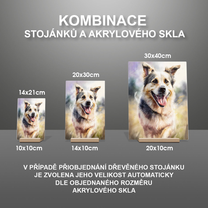 V případě přiobjednání dřevěného stojánku je zvolena jeho velikost automaticky dle objednaného rozměru akrylového skla viz produktové foto.