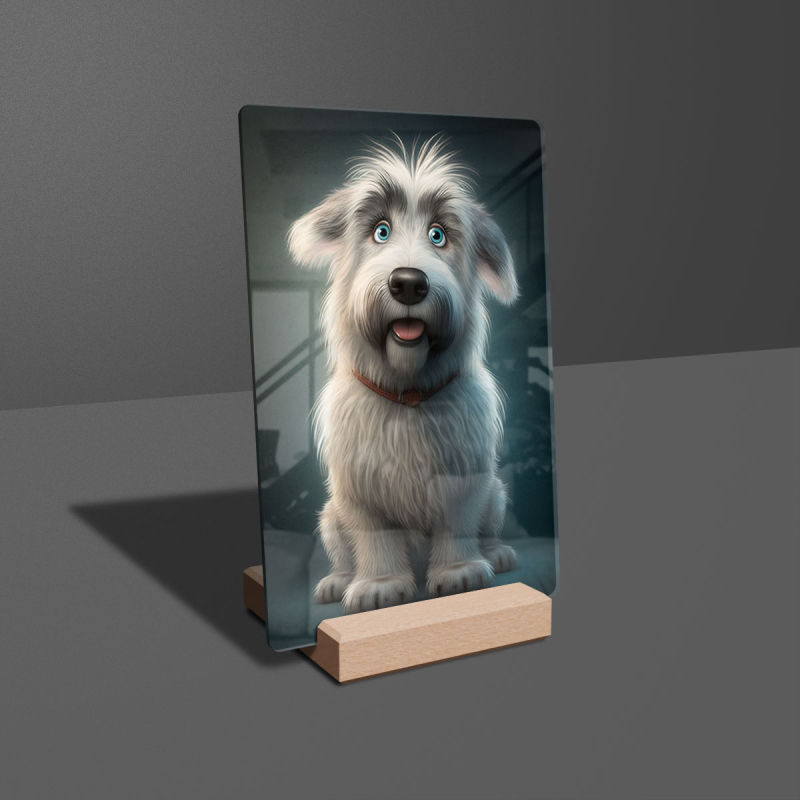 Dárková deska s digitální grafikou psa z akrylového skla.