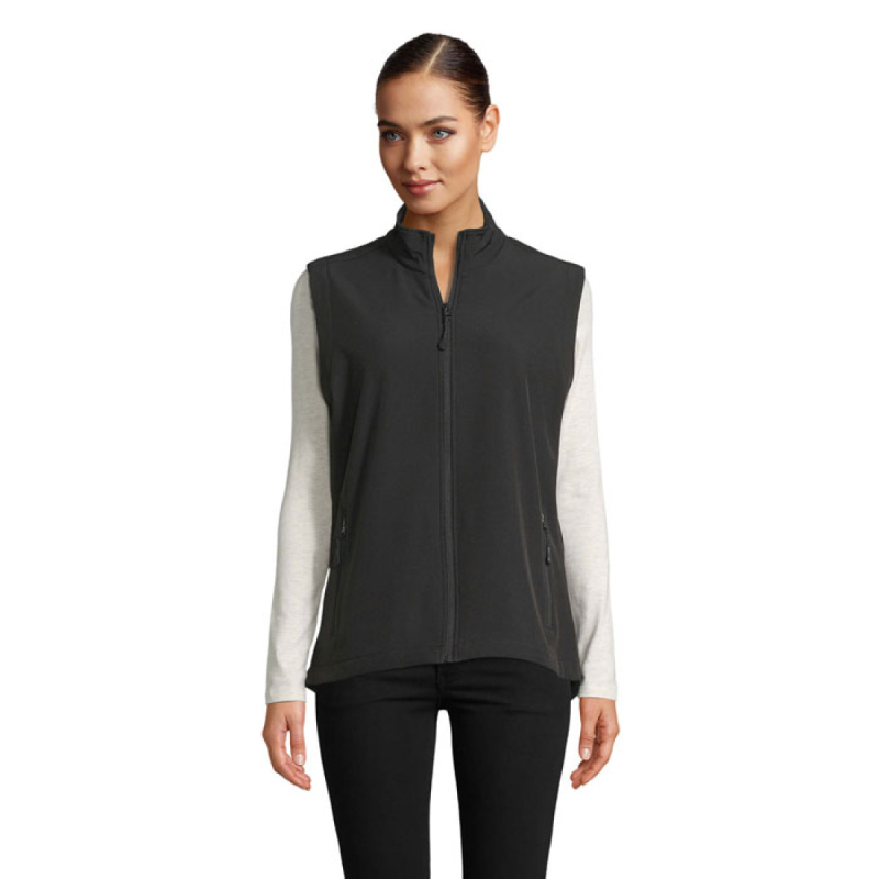 SOL’S RACE BW WOMEN, WOMEN’S SOFTSHELL BODYWARMER, 96% polyester - 4% elastane, Polar fleece lining 100% polyester, 2 layers SOFT SHELL 280, 2 zip pockets. About sizes matching, please refer to the size chart in the product documentation section.