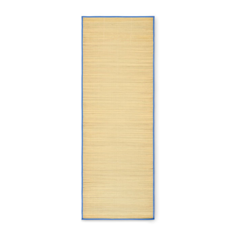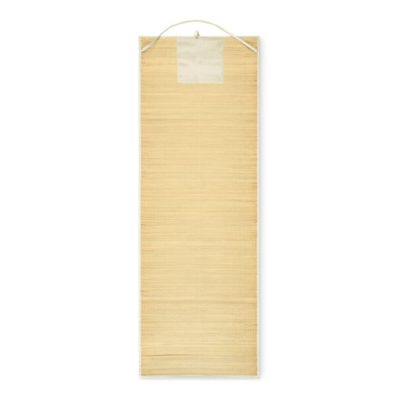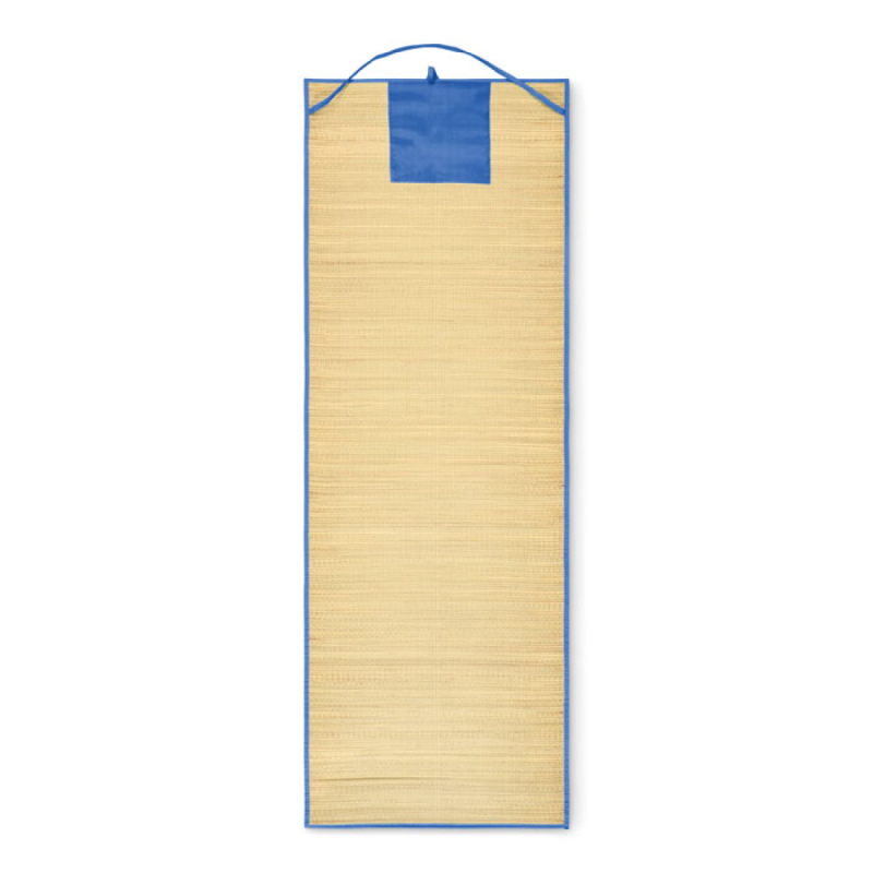 Plážová rohož z přírodní slámy s polyesterovým popruhem na nošení.