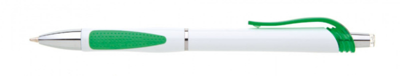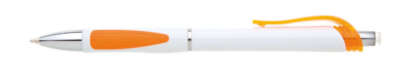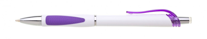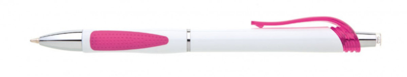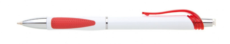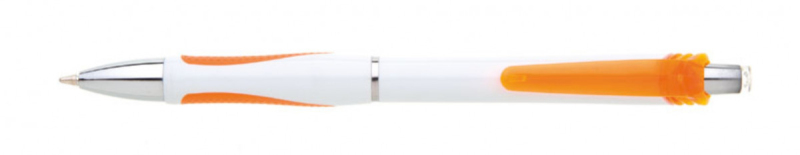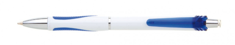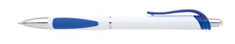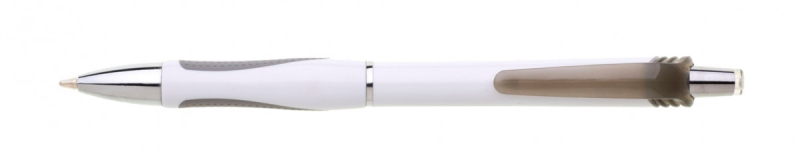 Bílá, plastová propiska s pochromovanými doplňky jako jsou klip, tělo cvakátka a proužek uprostřed těla tužky. Grip je šedý, částečně pogumovaný, stejně jako klip. Náplň X20, hrot 1mm.