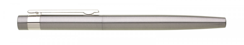 Roller z recyklované nerezové oceli s víčkem a decentním barevným odlišením barvy klipu s jeho uchycením. Náplň keramická modře píšící.