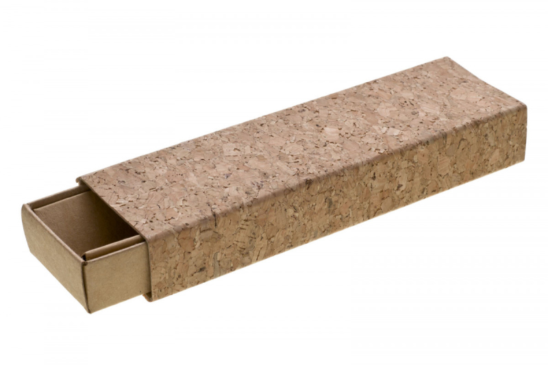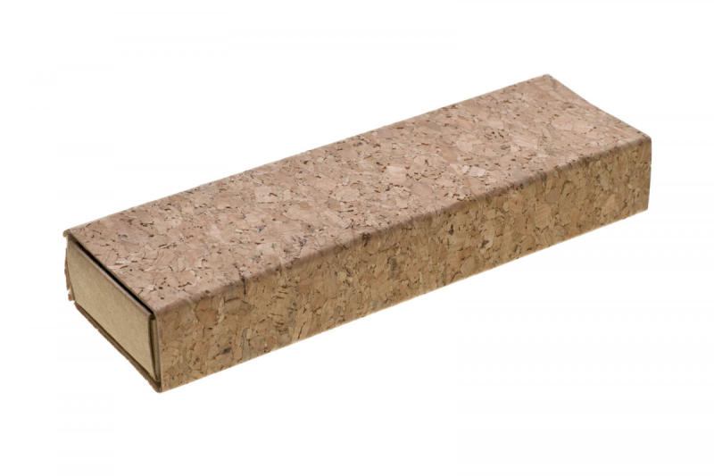 Krabička na 1 propisku z recyklovaného papíru v korkovém přebalu.