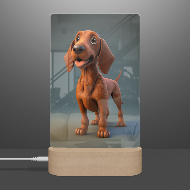Součástí balení je akrylové sklo dle výběru, dřevěný RGB LED stojánek a napájecí USB kabel.