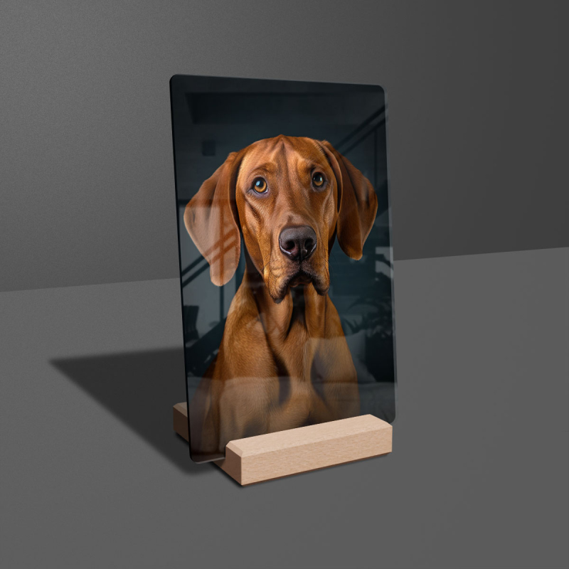 Dárková deska s digitální grafikou psa z akrylového skla.