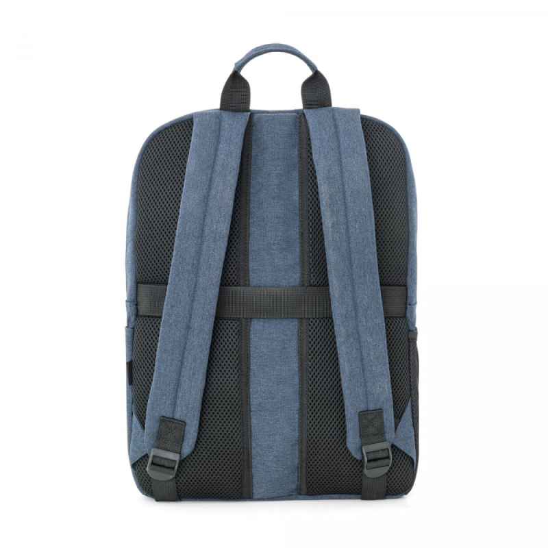 Batoh na notebook 600D rPET s polstrovanými ramenními popruhy. Hlavní přihrádka má 2 polstrované přepážky pro notebook až 15.6 ’’ a tablet až 10.5 ’’. Obsahuje dvě přední kapsy na zip a jednu boční elastickou síťovanou kapsu. Polstrovaná záda s nastavitelným páskem.300 x 420 x 110 мм